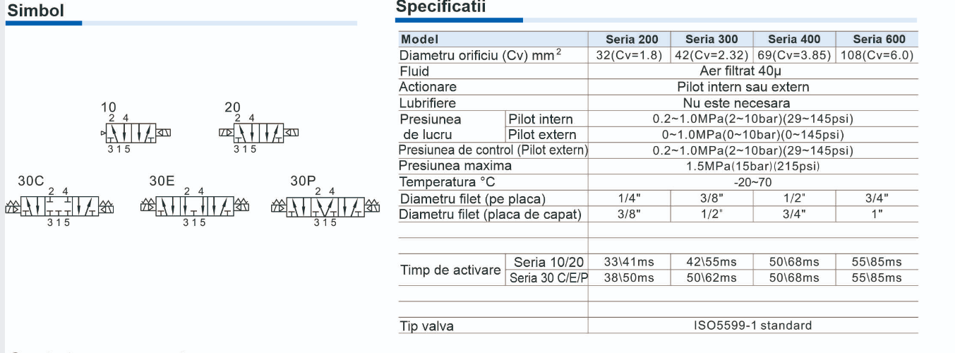 Distribuitor pneumatic ISO 5599/4 schema 5/2 centru inchis ISO 5599/2 schema 5/2 bistabila